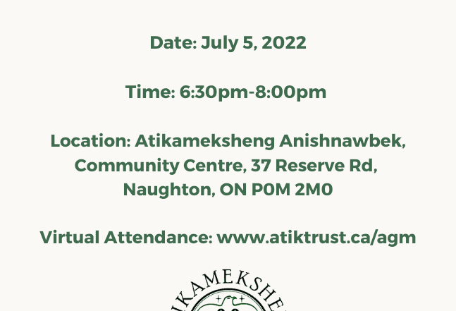 NOTICE OF VOTE ATIKAMEKSHENG TRUST Notice is hereby given to the electors of the Atikameksheng Trust that an election for two Resident Trustees and one Non-Resident Trustee will be held on the 15th day of [...]