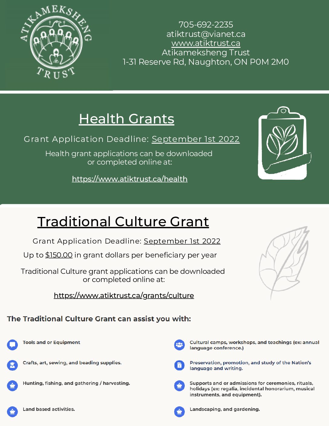 We're happy to announce that in 2019 we've managed to provide over $20,000 in health grants to the people of Atikmeksheng Trust!
